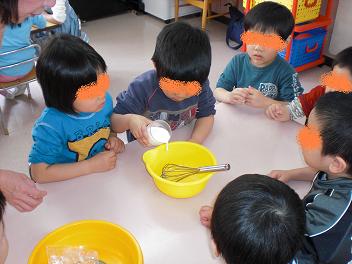 今朝は氷点下7・9度まで下がった我が町。。。もう4月になるんだから、そろそろ暖かくなってほしいな~~~。。。。 今日も春休みの預かり保育!3日間の予定だったので、 今日でおしまいです。。。 昨日お休みだった?年中さんも今日はまたドドド~~・・・っとやって来て40名弱の子どもたちが元気に登園しました!!! ・・・・・・・子どもたちが登園し始めた頃、わたしは運転手さんと一緒に来年度のバスコースを確認するために出かけていて約1時間、 バスに乗ってきました。 毎年乗る子が変わるのでもちろんコースもいままでと変わるんだけどそのコースを考えるのが とにかくたいへんでないあたまをフルに使って 必死で考えて今日のコース確認を迎えました。。 来年度はバスを利用する子が少ないので両方のコースをあわせても1時間ほどで回れるかな・・・??まだ正確な時間を出していませんが遅くても1時間10分くらいで回れるでしょう。。。 (o ̄ー ̄o) ムフフ 戻ってきたらまだ自由遊びをしていて、ほどなくしてお片づけをおこない みんなの出席確認をしてから 午前中の活動へ! 春休みに預かり保育をする・・・・って決まって申し込みを受け付けたときに申し込みを受け付けたときに3日間連続で預かりをする子もたくさんいたのでマンネリにならないように・・・・・・といろいろアイディアを出し合って内容を考えたのですが最終日の今日は、 おやつを作ることに!(けっこうギリギリで決めたんだけどー・・・・笑) ホットケーキなら家でも作ったことがあるだろうし、クラスか、 または未就園児クラスでも作ったことはあるので誰でも経験しているかな?とホットケーキを作ることにしたのですが導入は しろくまちゃんのホットケーキを読みました。。。 (ナゼかわたしが・・・・) そのあと、しろくまちゃんのホットケーキの絵本に従って?粉からではなく たまごや牛乳からボウルに入れて最後に粉を入れて混ぜ混ぜ。グループごとにやってもらったのですが、みんな作業を分担して 仲良くやっていました♪ だいたいのグループには年長さんがいたのですが、中には年中さんと年少さんだけ・・・・というグループもありそこはせんせいが離れないようにして何かあってもすぐ対処できるようにしました♪ 粉も入れて、さっくりと混ざったグループから 焼き始めることに! ホットプレートの熱を持つ部分だけには触らないで!・・・・と注意をして子どもたちにおたまですくってもらい 順番に焼きました♪ 1人1回ずつ焼いて、まだ焼いてないグループにバトンタッチして次のグループの子どもたちにも焼いてもらいお弁当の時間ギリギリまでかかって大量のホットケーキを 焼きました!!!! ホットケーキはおやつに食べることになっていたので、温飯器で温めておきました~~♪ お弁当の時間は、 テーブルを7個出して子どもたちに分かれて座ってもらいわたしも年少さん2人のいるグループに入って一緒にお弁当を食べました!!! お弁当の時間はわたしが担当だったので (そういう流れになっちゃった・・・)いただきマスをしてからごちそうさままで食べている子どもたちの様子を見つつ食べ終わった子どもたちとカルタをしたりして遊びました♪ 年少さん2名、 年中さん3名、 そしてわたし・・・の6人でカルタをして「読みたい!!」って子に交代で読んでもらったのですが子どもだから・・・・・・と言って油断しちゃあいけません。。。余裕~♪と思っていたのに、 惨敗・・・・・(´_`。)グスン 3回くらい同じメンバーでやったんだけど、どの回もすべて 負けちゃいました。。。 ( ̄▽ ̄;)!!ガーン 午後からは普段も預かりを担当しているせんせいが製作のものを用意してくださったのでみんなでセッセと作りました! そして作ったもので遊び。。。。 これってなんて言うのかな?ストローの先を開いて そこにボールを乗せてフーって吹いて浮かせるおもちゃ。。。ぞうさんのカオ付きですが、使っているうちにひっくり返っちゃってます。。。 ( ̄∇ ̄;) アハハー 上手にできる子もいれば、練習してだんだんと上手にできるようになった子ぜんぜんできずに泣いちゃう子などなどいろいろいましたが最後にはみんな笑顔で 遊ぶことができました!!! 製作のあとはお待ちかね? 午前中に作ったホットケーキを食べる時間!!生クリーム、 チョコレートのクリーム、メイプルシロップ、 そしてハチミツの4種類を園長せんせいが用意してくれて好きなものをつけて いただきまーす!!! あっという間にたいらげ、ほぼ全員が おかわりの列に並びちいさな1枚を半分に切ったりして なんとか足りました!!!美味しかったね~~~♪ 3時ちょっと前からお迎えのお母さんが集まり始め今日で本当に最後のお母さんや子どもたちとお別れをし今日で最後(?)の赤ちゃんも抱っこしまくり外まで出て みんなを送り出しました。。。 進級する子も、新しい環境で 新年度を迎える子もみんな春休みを元気に過ごせますように!!! ・・・・・そのあとは、あっちこっち