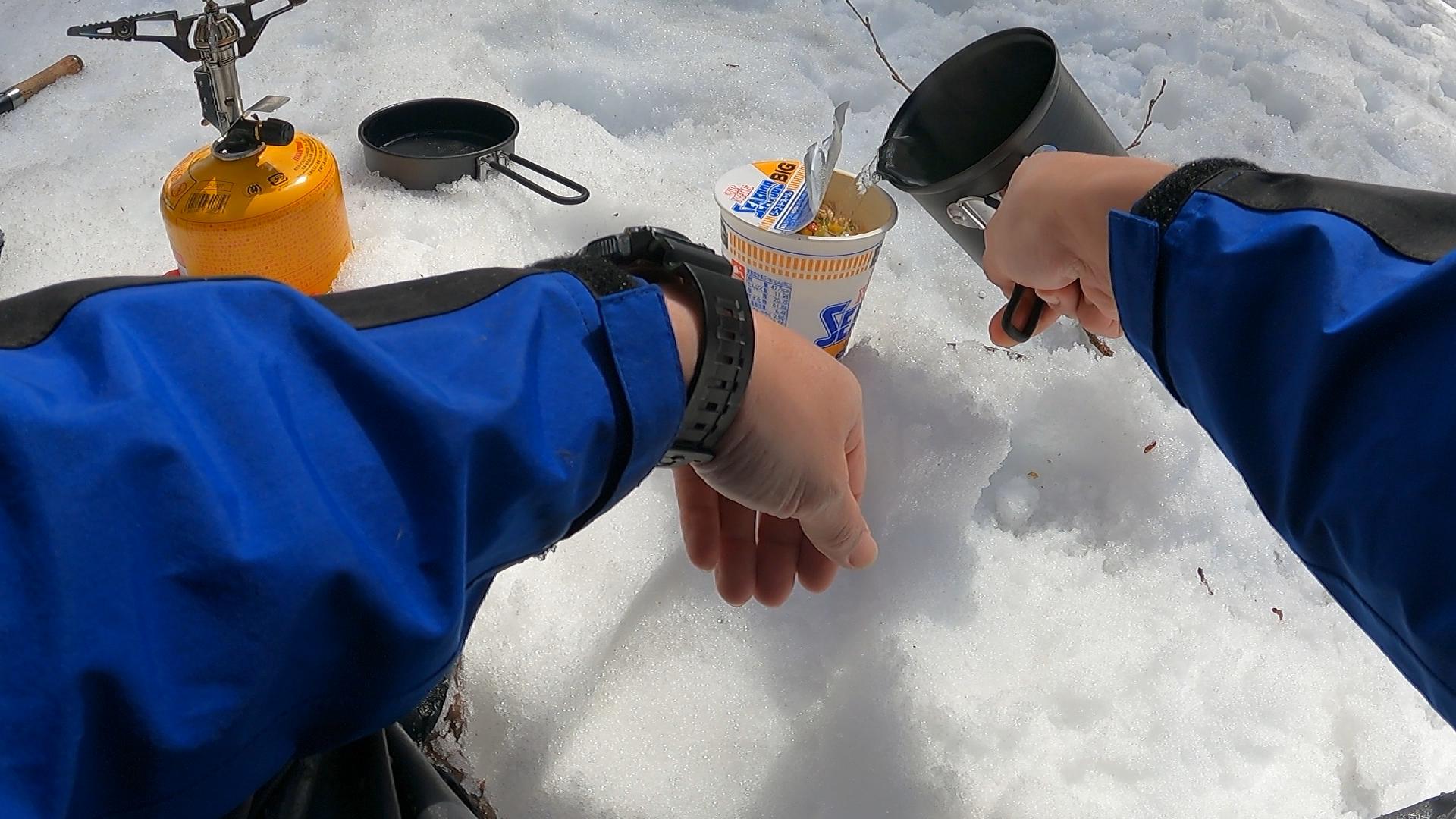 そのあとに食べた、雪上でのカップラーメン最高でした!!