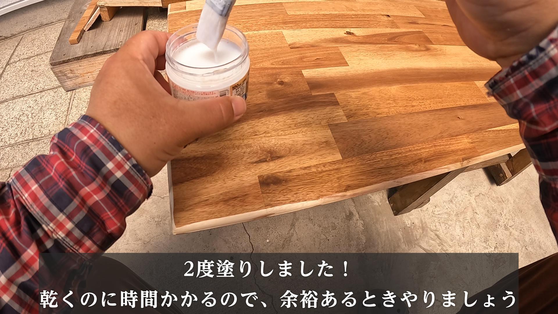 最後に、ニスをぬってテーブルは完成!