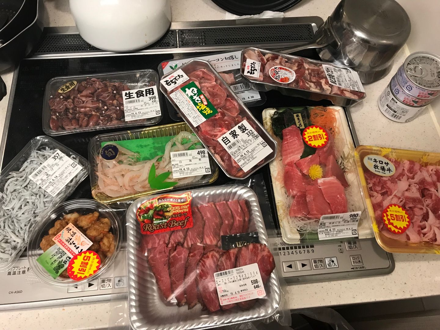 この中から、大トロ、さつま揚げ、肉のしゃぶしゃぶ、ソーセージ。