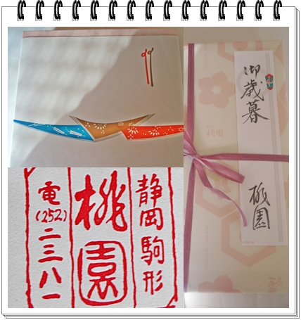 あれっ?日記を更新せずに4か月も経ってる~しかも暑い暑い夏が過ぎ、秋が過ぎ、さむ~い冬になってしまいました久々に更新しますッ今日はお歳暮の時期でもあるので桃園2でまたまた和菓子をpickupまずは・・・外見。下の桃園の所にはもちろん、送り主のお名前が入ります右上:包装 左上:熨斗左下:熨斗の左下に桃園の印が入っています(郵送可能:ゆうパック) 今回はこんな感じいもぱん。栗まんじゅう。コーヒー羊羹 etc・・・それに栗むし羊羹いもぱんの中身はさっぱりした餡子。栗饅頭はもちろん栗餡コーヒー羊羹(3.5cm四方)は二層になっていて 底2.5mmはザラメのような触感です。上のコーヒー味の部分はこれがまた羊羹と水羊羹の間位の触感で餡子とコーヒーがうま~くコラボして甘すぎずコーヒーの香りとほんのり苦みが味わえますお茶にも勿論コーヒーにも個人的にはローズヒップティーも合うのではないかと思いました。前回のブログで少し紹介しましたがギャル曽根ちゃんがテレビ撮影で大きいバージョンのコーヒー羊羹を3本も食べたとか 10時、3時のおやつ、小腹がすいた時、最高脳まで満足頑張った自分に御褒美だったら寝る前でも・・・ さーてお次は、栗むし羊羹栗の時期が終わってしまったけどまだありましたぁ切り分けた時、この栗むし羊羹なら一個ずつ切れるから喧嘩にならないネ お客様が来た時のお茶菓子でも上品なお味とモダンな感じが良いですョ 今度は華やかな和菓子をまた載せますね『駒形 桃園』 住 所 静岡市葵区駒形通り電話番号 054-252-2381営業時間 10:00~19:00定休日 火曜日/HP なし※電話問合せ、発送有冬になると無性に甘い物が食べたくなってしまうのはなぜだろうまだまだダイエット中でも和菓子ならいっか 体重が昨年10月から12キロ位減ってますよぉ PS:前回ねりきりの材料を載せると書いてありましたが 次回の和菓子アップで載せます。ごめんなさい m(__)m。
