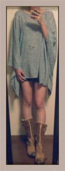 こんばんわ♪ヾ(●ω●)ノ" いつも訪問ありがとうございます今日は2回目の更新です♪ みなさん、順調に買いまわってますか?(゚∀゚*)ノ あたしは完走できるほどの資金はないのでこの期間中にお得になってるものだけ購入予定です☆ てか、狙ってたものがP10倍とかになってて在庫が残り1個なんです朝までは在庫あったのに・・・結構な大物なのでホントに迷うよーこうやってる間にも売り切れてるかもーー!!(泣) とりあえず朝の日記に書いたポンチョだけポチしました♪ みんなのようにお得情報が分からないので届いたもの着画でも(;´▽`A こちらJUICYちゃんが紹介していたニットチュニックです♪¥2090送料込こういう形大好きです(●´ω`●)これ絶対koolaburraに合わせたくて購入したんですがめちゃくちゃ気に入りました商品ページにはワンピと記載されてますが、小柄な方ならワンピになるのかも?あたしでは全くワンピになりませんでした・・・生地はニットですが厚すぎず薄すぎず今の時期はちょうどいいです♪日中は暑すぎてムリですが高そうには見えないけど安っぽさもないのでオススメ!!ちなみに家事をするときは袖を思いっきりクリップで止めてます(爆) 最近はホント過ごしやすくなりましたよね気温は高くても湿度が低いだけでこんなに違うのかとビックリです ブーツはこちらこれはホントに迷いに迷ってポチしました。・゚゚・(≧д≦)・゚゚・。他のSHOPさんより安いと言ってもやっぱり高いしでも長く履けることを考えてプチプラのものを何足も買うよりはいいのかなーとこのデザインは他ではないですしね想像よりはるかに軽くてビックリしましたが足が疲れにくそう筒の部分は薄手のムートンでそのままでは立たないのでブーツキーパー必要です 何だかPCの調子が悪くて何度も強制終了になるのでこの辺で最近、マジで旦那にイラつきますだから名前ばっかりのメーカーもん買うなっつったのに!!高いばっかりで他のお手頃メーカーと何も変わんない では、またーー お手数ですがポチっとしてもらえると嬉しいです♪にほんブログ村ありがとうございました