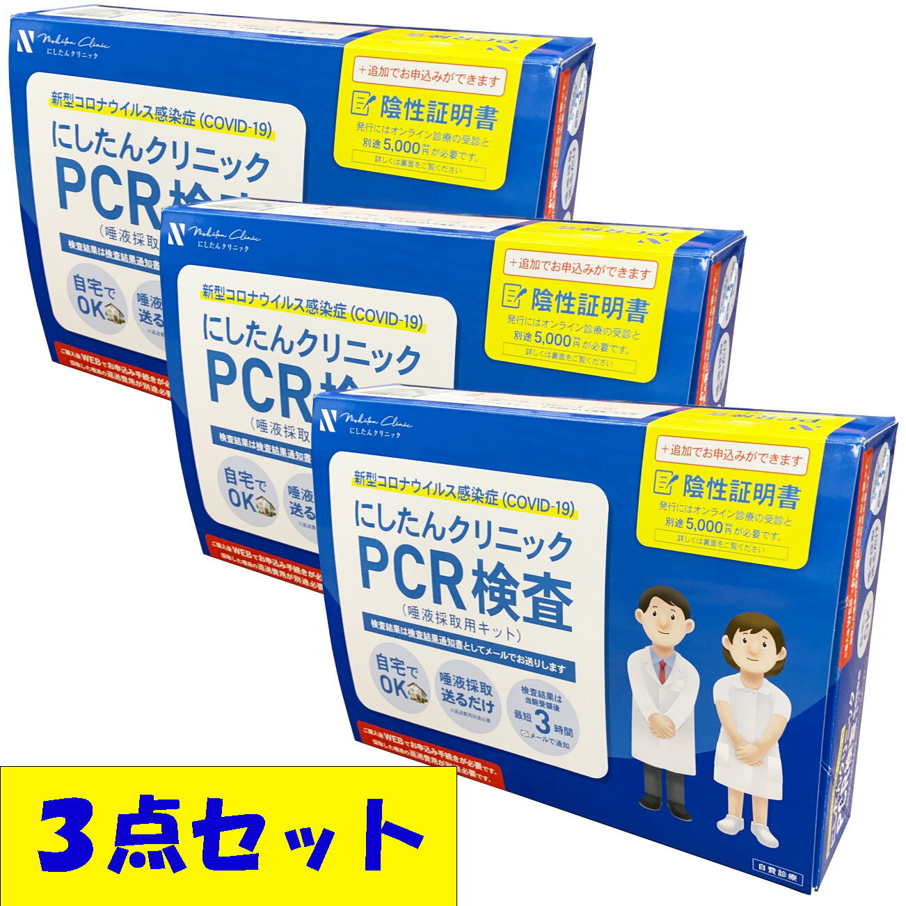 #コロナウイルス[宅配便]にしたんクリニック【PCR検査 3点セット】日本製 PCR検査 唾液 PCR キット 証明書 陰性証明書 検査 PCR検査キット 自費検査