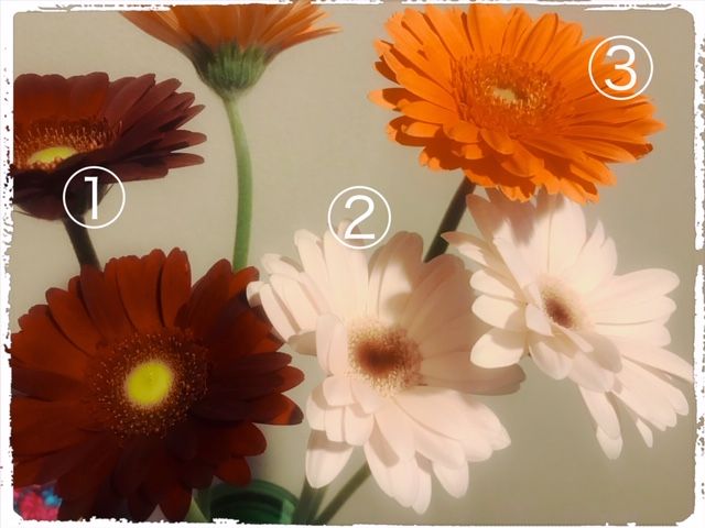 今回は「彼があなたに心の中で必死に伝えようとしていること」を占ってみたいと思います。写真の ① ② ③ の中から一つ選んでみてください。 ①は『深紅のガーベラ』です。②は『薄ピンクのガーベラ』です。③は『オレンジのガーベラ』です。パッと見て、直感で気になったものはどれですか?今、気になったものですよ♪決めましたか?^^ では、カードを展開していきます。結果はこちら☆↓http://himawariaimi.com/kare-kokoro-tutaeru/