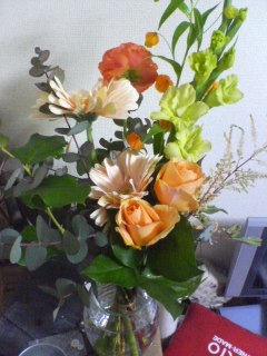 ついにやってきました、この日が。アルファさんとの再会。カッパ嫁ちゃんの尽力で。この日、結婚パーティーの打ち上げ&私の誕生日会が開かれた。メンバーは、カッパ夫妻、アルファさん、Wちゃん、私の5名。カッパ家で手巻き寿司パーティーが開かれる。肝心なときにチキンな私は。以前から、Wちゃんやムンや、マショーたんから「どうすればいいの!?」とアドバイスをもらっていたのだが。要はまとめると。・素直になれ・次の約束をとりつけろの二点になりました。どっちもむずかしーーーーーー。それでも。前夜マショーたんと打ち合わせ(という名の飲み会)で。名案が浮かんだ。私「そうだ!お酒がなくなったって言って、買出しに行くのはどう?そのときカッパ嫁ちゃんに『アルファも一緒に行ってあげて』と言ってもらうというのは」マ「いいかもねー」参謀の賛成も得られたので、さっそくカッパ嫁ちゃんにその指示を書いたメールを送る。カッパ嫁ちゃんからもOKの返事が。私がこの日のために用意できた具体的な作戦は。これ一つだけだった。そもそも。アルファさんがどういう人か。もう一度じっくり見ることも大事。結局、本当に話合えた時間はすごく短かったのだから。カッパ夫妻の結婚式の写真を見たり。ビデオを見ていたせいもあり。結婚の話や、将来についての話が多かった。その中で。けっこう「アルファさんってこういう人だったんだ」と、最初のイメージと違うところがいくつもあった。大人でやさしい人と思っていたが。いい意味でも自己主張はしっかり持っていて。自分が大好きな人なのだと思った。・自分はどうせなら何十億と稼ぐ人間になりたい・合コン、11月は6回行ったなどの話を聞いて、目を丸くする。合コン、そんなに行っているの!!!!「どうやって、それだけ合コンの相手を見つけるの」という質問に対しては。ア「結婚式でかなー。そこで会った人と連絡先を交換して。『今度飲みましょう』って言って、後で連絡を取るっていうことが多い」ガクッ。「飲みに行きましょう」メール、常用してんじゃん。なんだかすっかり意気消沈。それでも。カッパ夫妻の協力もあって。二人で買出しにいける機会もあった。カ「オレ、ビール飲みたいなぁ(←セリフ)」嫁「え、もうビールないよ(←セリフ)」私「あ、じゃあ私買ってくるよ。私も『氷結』飲みたいし(←セリフ)」ア「じゃあオレも行くよ」と。アルファさん、わりと気が利く人で。カッパ嫁ちゃんの指令がなくても。結局二人で買出しに行くことになりました。往復にして10分くらい。距離を縮めるような会話はできませんでした。通常の会話をして。飲み物を買って、カッパ家に戻ってきた。ごめん。カッパ夫妻。せっかくの二人の時間も。有効に使えなかった。きっとマショーたんが隠しカメラでこの状況を見ていたらば。歯噛みするくらいチャンスの場なんてあったのかもしれないけれど。そういう空気に関しては盲目なマオフイ。流れる時間に身を任せていたらば。特に何もする間もなく。お開きの時間が来てしまった。ううううううううううむ。次の約束を取り付けたわけでもなく。そして恋心を深めたわけでもなく。どうしよう、これから。Wちゃんにもこっそり「どうしよう」と、帰り道歩きながらこっそり聞いてみたらば。「無理しなくてもいいと思う」と。Wちゃんのアルファさんに対する評価、低くなっているぅぅぅぅ。そっかー。やっぱりそっかー。北北東だと思っていたら。西南西だったと。思うくらい、最初の印象と違ったな。まあ、こっちが勝手にイメージ持っていたのが悪いのだけど。以上、結果報告でした!!!!!カッパ夫妻からいただいた花。今日から我が家の一員になったドットちゃん。久しぶりに顔出し。消すかも。やっぱり消した。