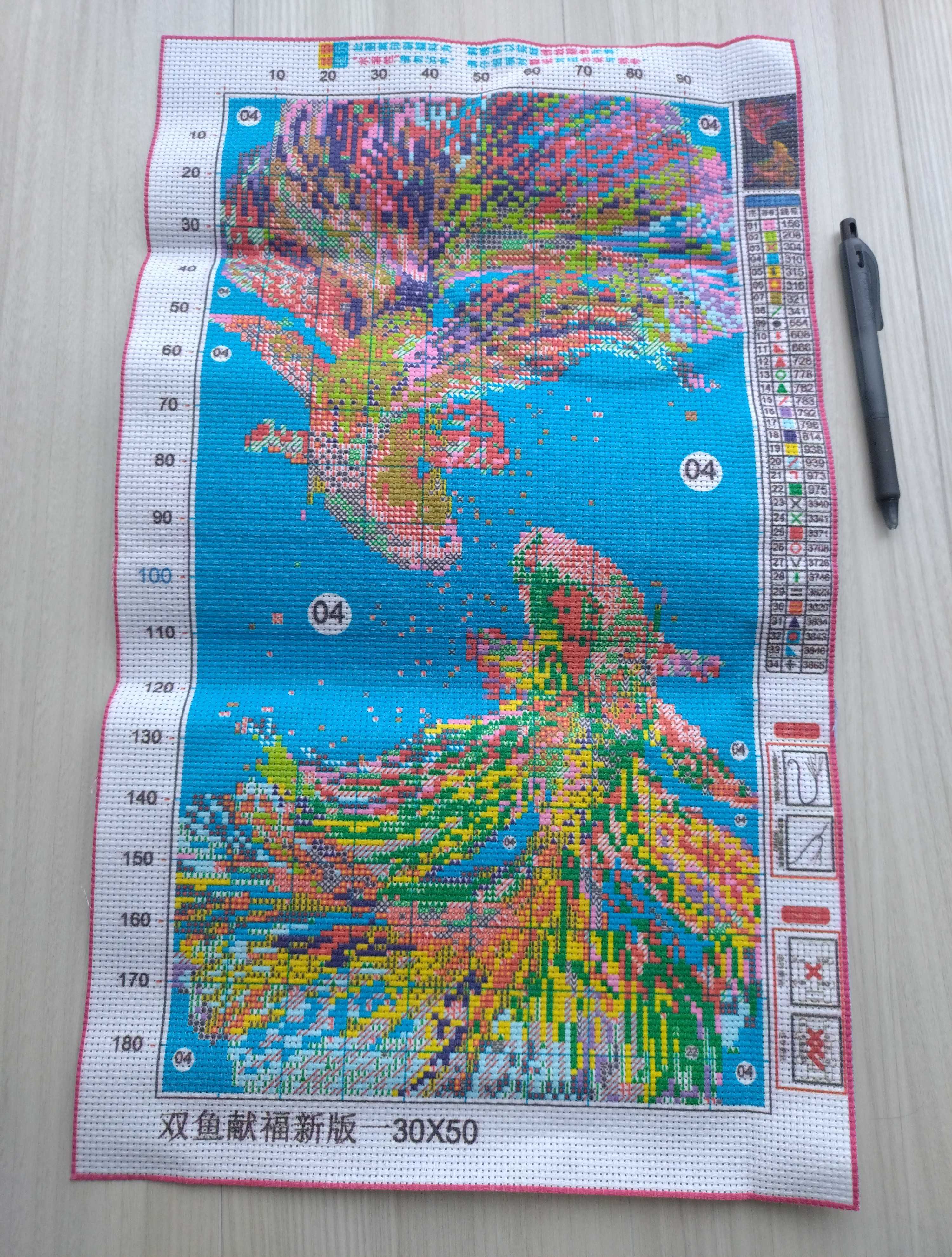 ヒマつぶしに何か手仕事をしてみたくなったので刺繍キットを買ってみました。届いたものがこちら。ー大作になる予感。既に布に色が塗ってあり、それに沿って刺繍をしていくので簡単にできそうです。全ての刺繍が終わったら、布を水で洗うと色が落ちて刺繍だけが残る仕組みです。老眼にはちょっと厳しいところもありますが無心でチクチク針を刺していくのは楽しい・・・今回買った商品は\1,000と手が出しやすい価格で針などの必要なものも一式入っているので気軽にできるところがヨキです。大作ゆえに、コッテリ時間もつぶせそうです。うまいこと出来たらブログに載せたいと思います!!一応貼っときマス。\おまとめ買いクーポン配布中!/ クロスステッチ キット 刺繍 キット 初心者 金魚 うお座 魚座 刺繍キット 鮮やか 初心者向け やり方簡単 布地図柄印刷 手芸 居間 玄関 壁 寝室 装飾 飾り ステッチ 刺繍アート 日本語説明書 手芸キット 三四郎市場 送料無料