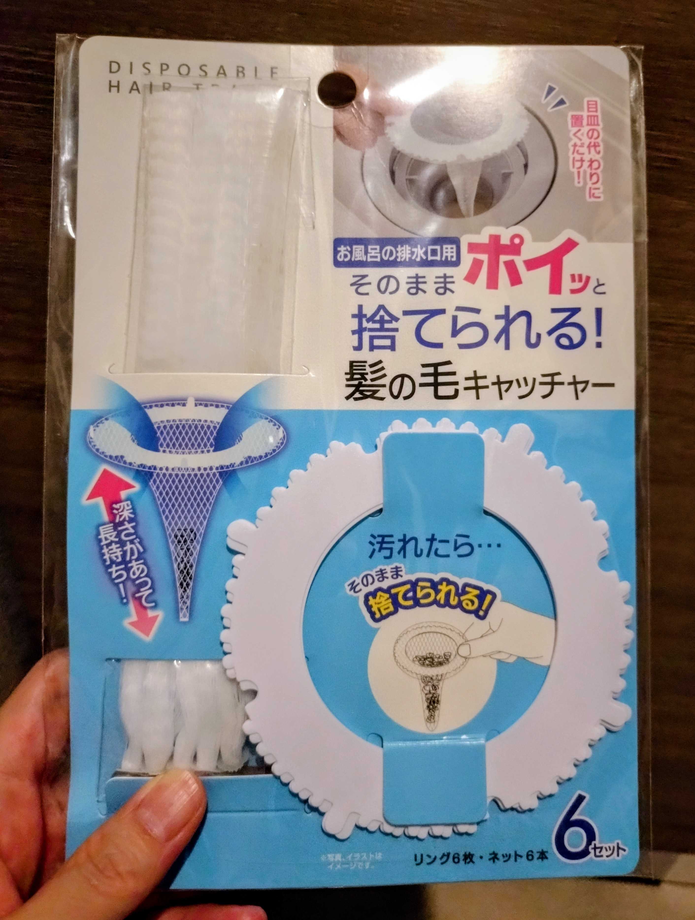 お風呂の排水溝にすぐに髪の毛がつまって嫌になる、と友人に話したところ、100均(キャンドゥ)で良い商品を教えてもらいました。これにゃー今までは排水溝のヘアキャッチャーにこうやってネットをかぶせていたんですが、これだと毛根死んでる私の髪の毛の場合、すぐにつまっちゃうんですよね。でも、友人に教えてもらった方をこう嵌めるとこの下↓のビローンとしているところまで髪の毛をキャッチしてくれるので 長いこと詰まらないで済むのです。イエー。人生をより良く生きるのに必要なのはお金じゃない、情報だ!!