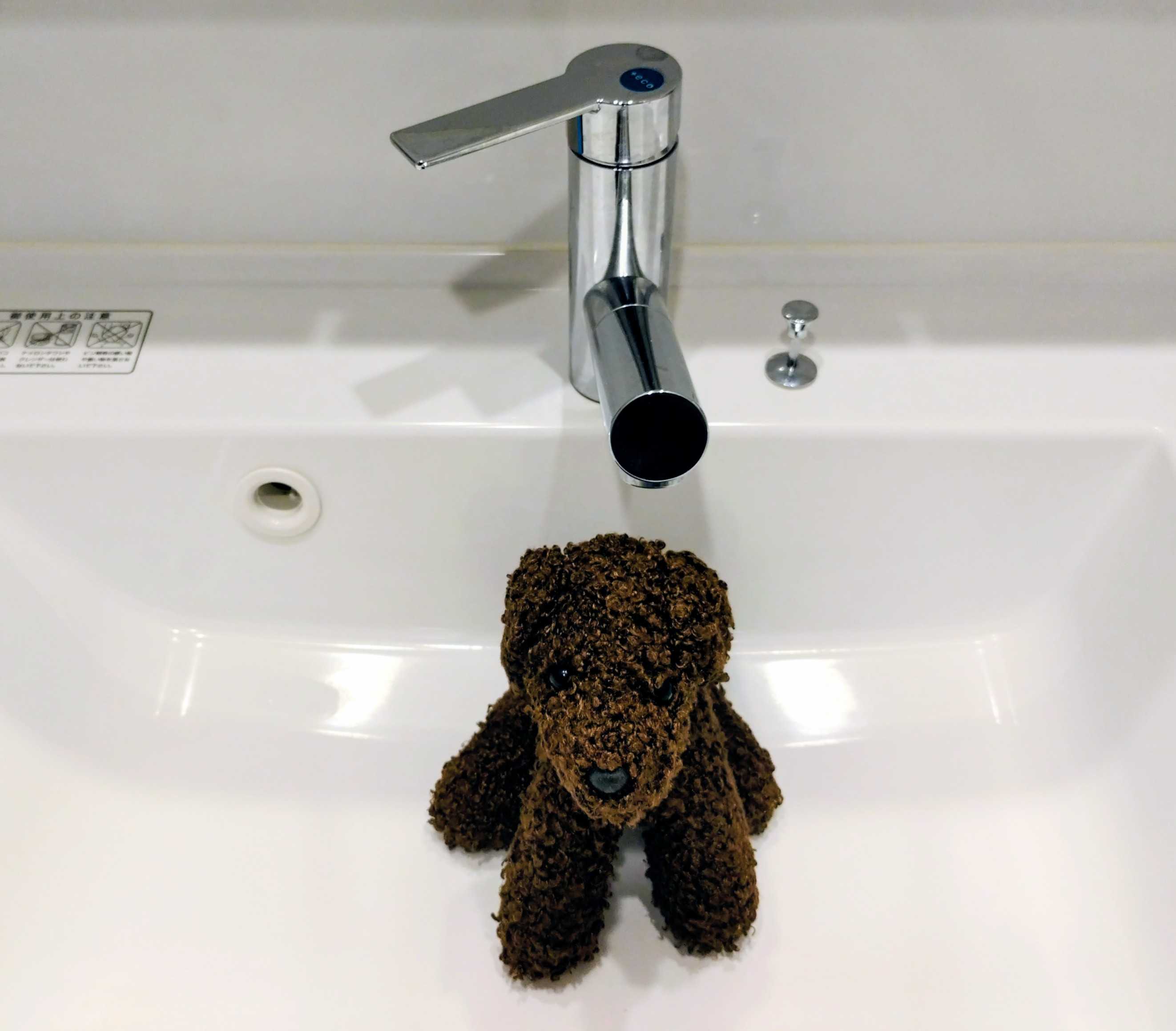 レインボーブリッジを閉鎖してやりました。ー嘘です。閉鎖したのは洗面台です。洗面台にピンクカビを見つけたのです。とても裏切られた気分でした。あんなに頻繁に掃除してたのにどうして・・そして私は洗面台を閉鎖することを決めたのです。使用さえしなければピンクカビも生えませんし掃除する必要もありません。洗面台を掃除し直し、ピンクカビも除去しクロスできれいに拭きあげて。間違って使用してしまわないように見張りもつけておきます。↓見張り洗顔や歯磨きはキッチンでやります。気分的な問題を除けば特に支障はありません。むしろステンレスの方がお手入れがしやすいのであんまり気を遣わずに使用できるのが良いです。正直、清々した気分でした。マンションを購入してからずっと掃除に憑りつかれていました。今回ひとつ呪縛から解放された気分です。