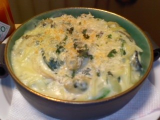 ある日の晩御飯~寒い日には、アツアツのものが食べたくなるのよね具だくさんな牡蠣のグラタン牡蠣、玉葱、しめじ、ほうれん草千切りポテトにマカロニまで入ります。これだけボリュームがあったら少しのパンがあればと思うところですけど鯛めし茶漬け鯛めしが残っていたので焼きおにぎりにしてわさびに海苔胡麻、三つ葉をのっけて熱々のお出汁でお茶漬けにしたら予想以上のおいしさでした絹さやと蓮根のサラダなんだか体に良さそうで美味しさ倍増健康を気遣う?年頃です(^^♪母の銀杏~母が早朝に銀杏拾いをしてきれいにしておいてくれます。手間暇かけた「母の銀杏」なのに、、、銀杏の存在を忘れていました今日は一人で殻むき力加減が難しい、、、ボイルして薄皮を剥いたものを小分けにして冷凍保存すると便利なのです。あまり拾えなかったといっていましたけどこれだけあれば十分! ありがとさんにゃんこ~横を向けば、こゆきが休憩中大きな体を支える足が楽になるのだろうか、、、クリックしていただけると嬉しいです。にほんブログ村