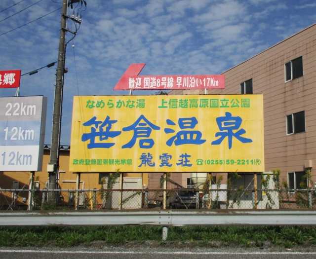 すぐに3泊目の御宿「笹倉温泉 龍雲荘」の看板が出てきた。