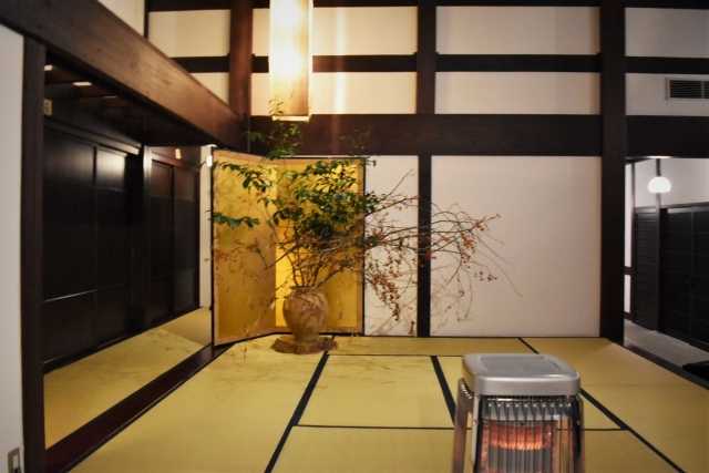 ふたつ目の引き戸を入ると、囲炉裏のあるお座敷と、