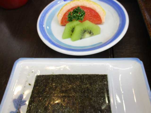 焼き海苔は同じだけど、グレープフルーツにキウイ付き。