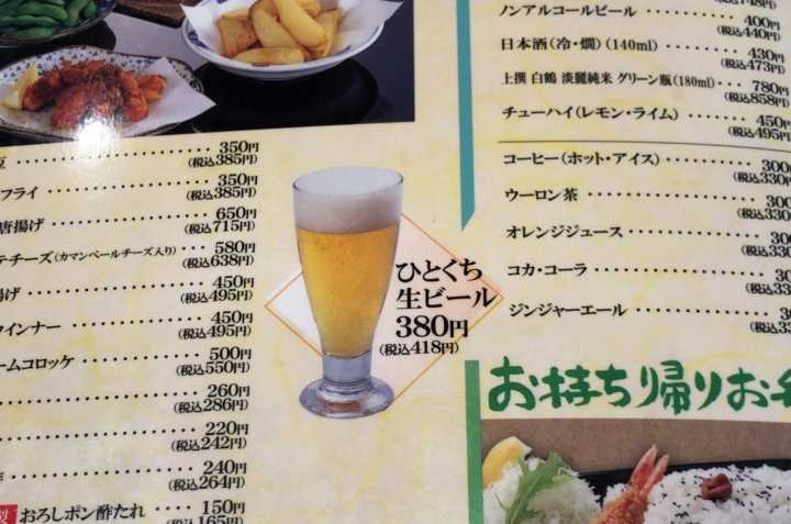 「ひとくち生ビ」が、「ひとくち生ビ」が、メニューにあったのに、