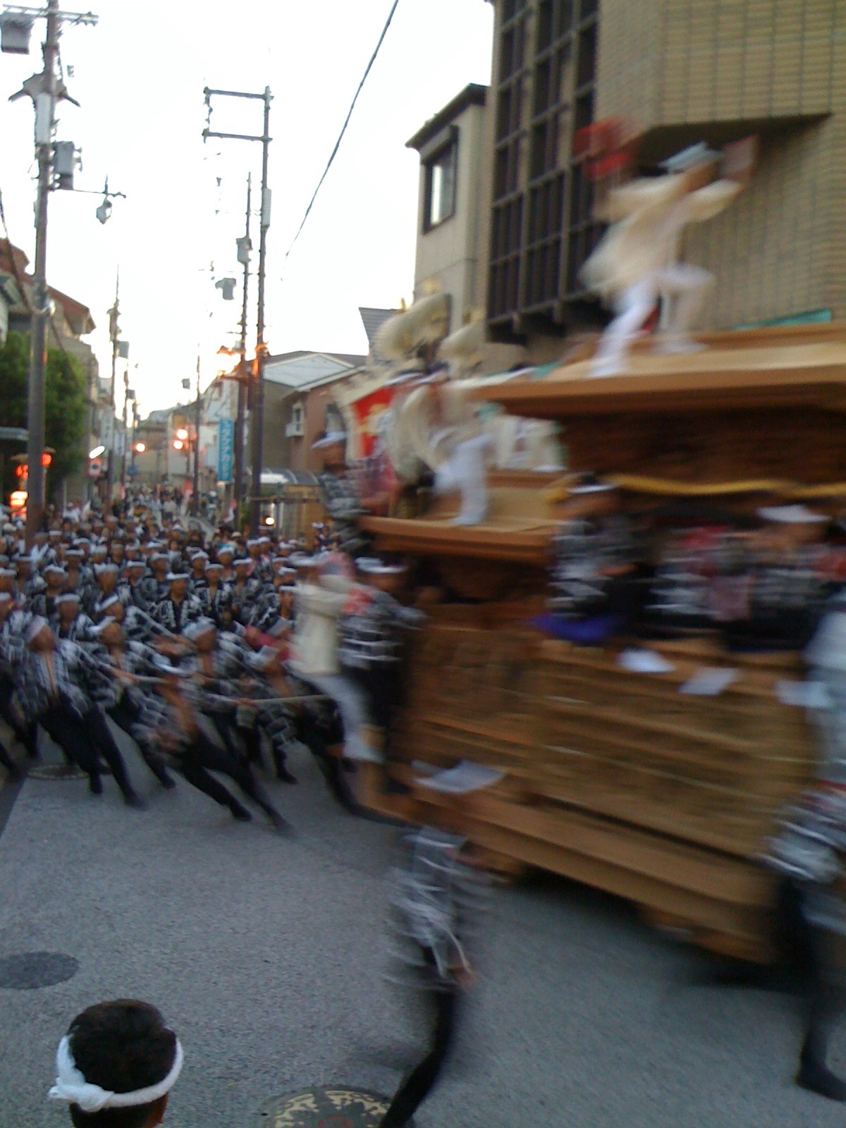 明日からお祭り。明日は、試験曳き。土日はパレードと宮入りがある。岸和田に生まれた地元の人なら帰ってくるだんじり祭り。電車を乗り換えることと疲労を考えて、岸和田行きのバスにのって帰省した。だけど、バスはやっぱり疲れる。3列のゆったりシートだけど眠れない。有効に時間使えるし、片道だけはバスにしよう。