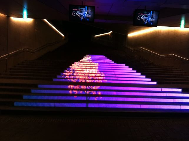 映像階段、真ん中上る?端上る?? 場所: Akasaka Sacas真ん中を堂々とのぼりたい。