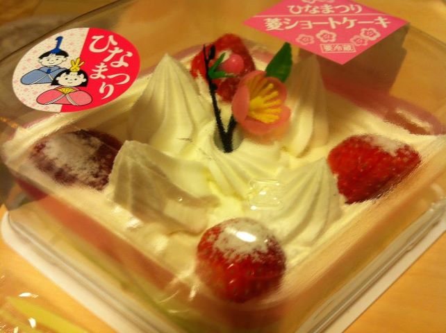 毎年恒例になりつつあるピザとコンビニおヒナ菱形ケーキ。決して、美味しいとはいえない。本当は、ケーキ屋さんのケーキを、好きな人と食べたい。