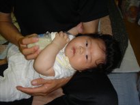 4ヶ月健診に行ってきました♪場所は区の保健所で受付時間は8:45~10:00まで。8時半には出たいなぁ…と思ってたけど、今日に限ってみちゃの起床8時(--;家を出たのは9時前でした。電車か車か…と悩んだけど、車で行くことに。今日は健診に行くので、歯医者は明日にしようと思ってた。バタバタしなくて良いから。その私の考えとは裏腹に、月曜日の夜から右下の歯が痛くて仕方ない。火曜日は歯医者さん、お休み(T_T)一日我慢したけど、昨日の夜から痛くて眠れないし、頭まで痛くなってきた。アゴから耳の辺りまで痛くて仕方ない。痛みに並はあるけど、我慢できひん…って事で、健診終了後、家に寄らずに実家に行くことにしたので車。保健所に9時過ぎに到着。受付でカルテの記入。転居してきてるので、保健所にお世話になるのは初めてだから、書かなきゃいけないらしい。受付を済ませてから、最初の部屋へ。色々聞かれたけど、子供可愛くないと思う事があるかって質問があった。それはない。こんな可愛い生き物はいない(笑)腹が立つこともあるけど、可愛くないなんて思わない。可愛くて仕方ない♪そういえば「近所に友達はいるか」って質問もあった。「いません」って答えたら「引っ越して来られたから仕方ないですね」って。そう…。引っ越して来なきゃ何とかなったというのにっ。前に住んでたマンション、みちゃと同級生になる子が2人もいた(T_T)児童館とか利用してみて下さいねって。案内の所に行ったら、近所の児童館のチラシだけが残ってなかった(--;次はオムツ一枚になって身長、体重、頭囲の測定。BCGの時と違って、みちゃは全く泣かずにオムツ一枚になってもご機嫌~。雰囲気が違うから? 出生時1ヶ月健診時4ヶ月健診時体重3450g4106g7320g身長48.1cm52.0cm62.8cm頭囲35.3cm34.0cm41.3cm胸囲35.0cm36.0cm測定なし。なんで?頭が生まれた時より1ヶ月健診の方が小さいのは前から謎なんだけど(笑)3ヶ月で慎重派10cmも伸びた。すごいな~。次は診察。待ってるときに隣に座ってたお母さんとお話しした。みちゃとは6日違いの男の子。住んでるトコは遠かったなぁ…。保健所から近いトコに住んでる人だったし。ついたての向こうから号泣する声に、2人で何されるんだろうね?なんて。先生は2人。みちゃが診てもらった先生は若い先生。結構カッコよかった(笑)寝かされて「何されるの~?」って感じだったけど、聴診器に興味津々。胸にあてられたのを掴む。それを離されると聴診器のホース(?)を握る…(^_^;)握ったまま終了。うつ伏せは「しっかりしてるな~」と褒められて、みちゃご満悦。キョロキョロと頭を動かして、にーっと笑顔。他の項目も問題なし。私が卵を食べた後、おっぱいをあげるとブツブツが少し出ることを相談したら、控えた方が良いかもってことだった。この後は離乳食の進め方の話を聞いて、母子手帳を返してもらってお終い。私の母子手帳は前の市でもらったから、黄色。今の所はピンクだから目立って分かりやすい(^_^;)結局お話しできたのは一人だけ。何か夫婦で来てたり、おかあさんと来てる人が多かったし、終わったらみんなさっさと帰っちゃって話せなかった。ちょっと残念だったな。実家に戻ってみちゃを預けてから歯医者へ。戻って来たら、「今日は帰る?泊まる?」と母から聞かれた。弟は会社の飲み会らしく、夕飯が要らない。泊まるなら買い物に行かねばならないって事だった。自宅は暑い、実家は涼しい、ダンナくんは金曜日まで帰らない。「泊まる」ダンナくんには実家に泊まるってメールしておいた。一応、所在は伝えておかないとねぇ(^_^ゞ タオル、大好き