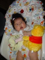 6月に入りました。来週でみちゃも満4ヶ月。生まれたのはついこの間のような気がするのに、もう4ヶ月になるんだなぁ…。今日は2度目の歯医者さん。先週、歯石をとってもらってから、歯の痛みは軽減されたものの痛い。上の歯は痛くなくなったけど、下の歯。我慢できないって痛みじゃないんだけど…。そういえば、先週これから歯石取りに火曜ってダンナくんにメールしたら「痛いで~」と返ってきた。痛いのは知ってるけど、我慢できないことはない。それに、あの陣痛の時の痛みを考えたら、歯痛も歯石取りもどーってことない。生理痛だって、あの痛みはこんなもんじゃないって我慢できそう(笑)男の人の方が痛みに弱いってもあると思うけど…。なんてやりとりをしてた。けど、待合室で待ってるときに読んでた張り紙で気付いた。もしかして、ダンナくんの通ってる歯医者さんの歯石取りって、ガリガリと手でやってる?私が通ってる病院は機械でうぃ~んってやるんだよね。細かい仕上げは機械じゃないけど。そんなに痛くないのはそのせい???歯医者の予約は12時。実家まで車で約1時間。寄り道したいなぁ…と思ってたら、みちゃが8時に起きてくれたので、9時半に家を出た。アカチャンホンポに寄りたくて。車に乗ってしばらくは「あーうー」と声を上げて、文句言ってたみちゃ。いつも小さいぷーさんを窓際のチャイルドシート横に乗せてるけど、無視してたみちゃ。それが昨日は手を伸ばしていつの間にか抱え込んでた。思わず信号待ちの時に写真撮ってしまった…。赤になってすぐだったからつい…。危ないからダメよね。自分からおもちゃを手に取るって行為を見て、手を使って物を掴むこと、それを手元に引き寄せることが分かってきたんだなぁ…と感心してしまった。そりゃ哺乳瓶も自分で持つようになるわ。その後、泣きもせずに寝てしまった。ひたすら寝る。寝る。寝る。アカチャンホンポ付近まで行っても寝てる。こりゃ起こして寄り道するより、まっすぐ実家に帰った方が良いと判断して、そのまま実家へ。あと5分位の所で起きたけど、これまた泣きもせず、「あーうー」と声をあげてただけ。みちゃ、いつもこうだとママは助かるんだけどなぁ…(^_^ゞ 歯医者は12時の予約だったけど、前の方が空いたから早めに来て貰って良いって電話があったので、早めにみてもらえた。まだ痛いって話をして診てもらった。虫歯はやっぱり見あたらない。私がしみると言う場所は歯と歯茎の間。結果、知覚過敏だろとのこと。レーザー治療と薬を塗ってもらいに通うことになった。来週も歯医者…。帰ってから、母とホームセンターへ。マルのおやつ、ささみジャーキーが安くなってたから(笑)あとはキンチョウリキッドを買いに。詰め替え用と本体。今までは1個で良かったけど、引っ越したら2階と1階に必要になった…。昨日の夜、蚊が飛んでたから、みちゃが刺されたら大変(>_