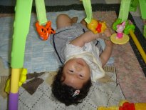歯医者の日。ってことで、洗濯物干してからお出掛け。ここ最近のみちゃの起床時間は7時半~8時頃。時間、決まってきたかな?今日も歯磨きに2階に上がったら、みちゃの手足がウゴウゴ…。それが8時頃。昼寝から起きるときは泣くのに、朝起きる時はご機嫌なみちゃ。一体何が違うんだろ???ジムで遊んで待っててもらいました。用意を済ませて、車に乗っけて出発。車とチャイルドシートに慣れてきたのか、おとなしく乗ってる。前はものすごーく文句が多かったのに。あまりにもおとなしいから、寝たのかと思ったら、じーっと外を眺めてる。様子を見てたら、ずっと起きてるので、アカチャンホンポに寄った。汗取りパッドを買おうかと悩んで結局買わず。これくらいは自分で作れるしなぁ…なんて(^_^;)けど、その作る時間がないのよね(笑)実家に着いたら、いつものようにマルのお迎え。何で分かるんだろ?私は車をお向かいの病院の駐車場に置かせてもらってるんだけど(水曜日は休診なので)、マルには患者さんじゃなくて私だって分かるらしい。犬の耳ってすごいわ~。みちゃに果汁を飲ませてから、私は歯医者へ。細かい歯石取りをしてもらって、知覚過敏のレーザー治療。前よりマシになったけど、まだ治らない…(>_
