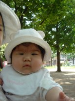 今日はネットで知り合った同じ区に住むママさんと会って来ました。これが初対面。先週、お散歩行きませんか?ってお誘いしてもらったので、お互いの家の中間地点にある公園で待ち合わせ。こんな日に限ってみちゃはお寝坊さん。用事出来たから良いけど。出掛ける少し前にミルクを飲ませて休憩、出発。ちょっと早めに到着。写真撮ったりして待ってたら、Tさんと娘のMちゃんが到着。Mちゃんは8ヶ月になったばかり。ちょんっとベビーカーに座ってる様子が可愛かった(^m^*)みちゃはまだねんねだからねぇ。なんか初めて会った気がしない位、普通にお話しできた。メール交換してたからかな?公園の日陰で喋ってたんだけど、そこに小学生の集団が…。授業の一環で外に出てきてたみたい。自由時間なった途端、2人の女の子がみちゃとMちゃんに興味津々とばかりに寄ってきた。「抱っこしたい」と言われたので、座って貰って両手でみちゃを支えたまま膝の上に。さすがに支えないで渡す勇気はなく…。女の人って赤ちゃん好きな人多いけど、女の子もやっぱり好きなのね。その小学生の名札を見て「あれ?」と思った。最近の小学校の名札って苗字だけなのね。私が子供の頃ってフルネームだったんだけど…。よその学校は苗字だけだったのかしら(^_^ゞ しばらく子供たちと話をしてたけど、蚊が飛んでて刺されたので退散することに。帰る方向は逆なので「今度はランチでも♪」と約束して、公園の前でお別れ。1時間程度だったけど楽しかった(^m^*)蚊に刺された箇所は9カ所(T_T)みちゃは無傷。良かった良かった。何で私、こんなに蚊に刺されやすいんだろ~(T_T)その後、100円ショップ、ジャスコとはしご(^_^;)100円ショップでお風呂のタイルに貼るシールを見つけたので購入。くまのプーさん( ̄ー ̄)ぷーさん好きだから選んだんだろうってダンナくんには言われそうだけど、ぷーさんしか売ってなかったのよね。ホームセンターで買うより安かったし…。みちゃの髪留めも買ったけど、これは失敗。小さすぎてうまく髪につけられない。大きめの買えば良かった(--)仕方ないので、引越の段ボールを漁ってみました。高校時代に買った髪留めを探すために(笑)今の女子高生なんか、こんなのつけないんだろうなぁ…。可愛すぎる(笑)ピンクのくまちゃん付きだもの(^_^;)みちゃさん、なかなかお似合いです。お風呂のタイル用のシールは、とりあえず浴槽周りの低い位置のタイルにペタペタ。雰囲気が変わって良いかも…。 慣れてきたとは言え、落ち着かないのよねぇ。赤いタイルのお風呂場って。高校時代からの友達からメール。今週末か来週末、良かったら遊びに来たいって事だった。今週末は予定が入る可能性があるので、来週末ってことで。何かここの所、人と会う機会が多いから嬉しくなる。まぁ、しばらくしたら静かになって寂しくなっちゃうんだけど…。みちゃが生まれてから、独身の友達と遊ぶ機会は減ったし、出掛けられたとしても、みちゃも一緒だからなかなか誘いにくい。オムツ交換もあるし、おっぱいやミルクもあげなきゃいけない。ゆっくりお茶も出来ないだろうし、悪いなぁ…って思っちゃう。だから、たいしたおもてなしは出来ないけど、遊びに来てくれるのは嬉しいな♪それにしても今日は暑かった…。エアコン入れてても暑いんだもん。今年の夏の電気代が恐ろしい(>_