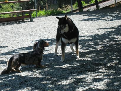 今日は朝から爽やかなまさに5月!みたいな天気でしたね。絶好のお出かけ日和なので、暑くなる前にと午前中に前からチェックしていたご近所ドッグラン&カフェへレッツゴー!ここがまた見晴らしがよいのですよ。山って素晴しい!涼しいし!行ってみると、開店時間を過ぎたばかりだったのですが、県外ナンバーの車が二台。トイプードルちゃんと甲斐犬ちゃんがいました。最初は私の足元でぐるぐるしていたひなでしたが、あっというまに慣れたのか、知らないところ=たったか散歩を始めました。とくにトイプードルのぷーちゃんはパパママと一緒に来ていたんだけど、フレンドリーというか、積極的というか。一緒に遊んでもらいました。年齢も近かったものね。ひなは普段わんこのご近所さんがあまりいません。なので、散歩のときに逢うわんこさんもまれなのです。しかもみなデカイ!なので、ドッグラン=ほかのわんこさんもいる=大丈夫か!ひなと思ってたんですが、一安心です。このドッグランはプールもあって、ちょうど今日プール開きなんですよ、ということでした。水を入れていると、常連さんの大型わんこさんたちが続々登場しました。さすがに大きなわんこと一緒では怖いのか、椅子の下近辺でしか遊ばなくなってきたので、引き上げることに。大きなわんこと一緒なのは慣れが必要かもしれませんが、よく遊んでいたようなので、また行ってみることにします。