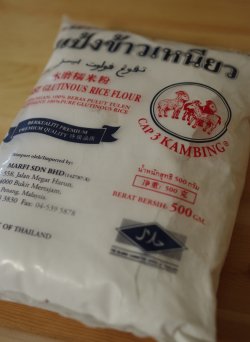 自分でお餅が作りたくて試行錯誤すること3回。1回目は7月7日の日記。近くのスーパーで購入したもち米でホームベーカリーの説明書き通りにやってみました。でも、米粒が潰れきらなくてブシブシ。2回目はもち米を充分に水に浸してから圧力鍋で炊いて、ホームベーカリーのこねるモードで15分こねてみました。でもやっぱりブシブシ。それに手間がかかる。3回目 もち米の粉でやってみたら?という助言を頂きもち米の粉で試してみました。pulut rice flour 500g 2.6RM(68円くらい)日本ではもち米の粉ってなかなか売っていないけどマレーシアはどこのスーパーでも売っています。みんな何を作るんだろ?もち米の粉500g、お湯350~370ccをホームベーカリーに入れお箸で全体を混ぜてから、もちモードでスイッチON完璧に出来上がりました!小さめの丸餅10個作れました。半分はあんこを入れました。もちモードはもち米から作ることを想定しているので時間がかかり過ぎかも。次回は短めに調整するか、熱湯を入れて「こねモード」だけでもいいかもしれません。ホームベーカリーが無い場合は、お鍋で弱火にしながらこねてもいいかも。★餅の保存法と食べ方★表面が乾いてきたら、柔らかいうちにナイロン袋に入れて冷凍庫に入れます。食べる時は、時間があれば自然解凍して、レンジで1分間チン。時間が無い時は、水に5~10分浸しておくと、表面が柔らかくなるのでレンジで1分間チン。私はきな粉をまぶすのが好きです。たまに、しょうゆ、のり、バター餅、チーズ餅、大根おろし餅、しょうが餅そして、おぜんざい、お雑煮。出来立ての柔らかいお餅をそのまま凍らすと、解凍した時も柔らかいのです!!保存できるし、すぐに食べられるし、ご飯より腹持ちがいいし。あまり食べる気にならない朝にもするっと入るので、いつも朝食にしています。子供さんは喉に詰まらせないよう注意が必要ですけどね。私も小さいころ、よく喉に詰まらせていました(^^;