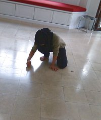 床のタイルが傷だらけで拭いても綺麗にならないのでせめて目地だけでも白くしようと実験していました。壁は塗りなおされていますが床のタイルは一度もリフォームしていないと思われます。自分たちで選んだ部屋じゃないのでちっちゃい不満はいっぱいありますビフォーアフターいろいろ試した結果、アクリル絵の具の白で塗る→白のマニュキアでコーティングがベストでした。白のマニュキュアのみ---ムラになる。アクリル絵の具のみ---強度が心配。汚れが染み込みそう。塗り方にもコツがあって、絵の具のチューブのまま押し当てながら塗り乾いてからはみ出た部分を剥ぎ取ります。乾いたら樹脂状になるアクリル絵の具の特性を利用したやり方です。ただし、目地が深い、昔風のタイルのみ。今風の平らなタイルでは難しいと思います。この作業、かなり地道ですが、やりだすと気持ち良くてたまりません。