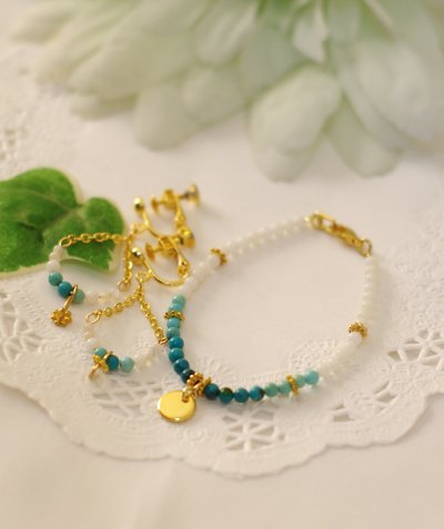 今日は朝から珍しく雨。普段は午後3時以降に夕立のようにスコールになることが多いマレーシアだけど朝からシトシト降り続くと日本の梅雨みたい。こういう日はお家にこもるのが一番(^^;いつもは大きい石を使うことが多いけど小さい石もたくさん持ってます。小さいけど、ちゃんと天然石って主張してくれる。プチアクセ。小粒だからこそ、質の良い天然石を使うのが大人ジュエリー。ターコイズ、サンゴをグラデーションに並べてみました。自分で作るからお揃いのアクセにできるし、長さもぴったり。ナイロンコートワイヤーに通して、端に金具を付けるだけです。こちらはナチュラルカラーのサンゴ小さいチャームは日本で購入。チャームを付けるとグッと引き立ちます。こちらもナイロンコートワイヤーに通すだけ。ムーンストーンとアメジストをメガネ留めで繋げたアンクレットメガネ留めは時間がかかるけど、とっても繊細なアクセサリーが作れます。