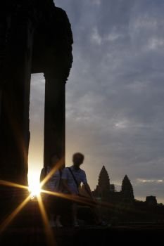 2日目は朝日観賞と大回りコースだけ申し込んでいたのだけどガイドさんのオススメもあり、ベンメリアにも行くことに。この日は朝、雲がかかっていて朝日が綺麗に見えなかったけど一瞬だけ綺麗に見えました。春分と秋分の日にはちょうとアンコールワットの塔の真ん中から太陽が昇るんですって!その両日には朝日を見に来る人が大勢いるそうです。11月、6月は一番遠いのだそう。一度ホテルに戻って朝食を食べてから7時45分に出発。いざベンメリアへ。アンコールワットがあるシェムリアップから75kmも離れています。途中、農村地帯を通って、高床式のお家や牛さん、地元の人々の生活も車窓から見ることができます。森の中の遺跡 ベンメリア天空の城ラピュタのモデルになったとも言われている廃墟となって千年近くの時を経た遺跡です。観光地化されて人がごちゃごちゃしているアンコールワットと違いなんとも言えない自然と廃墟の融合が感動を呼びます。まだ観光地として整備されて数年。観光地になる前はポルポト派が占拠していて地雷もたくさん埋まっていたんだそう。樹齢何年なんだろ。ガイドさんに案内してもらいながら遺跡の中に入っていきます。だれでも安全に歩ける遊歩道もありますが奥まで行くにはガイドさんがいないと危険です。どんくさい私は、夫とガイドさんに笑われながら、足ガクガクで瓦礫を乗り越えて行きました(^^;顔はぼかしてます。まるで2人だけで遺跡の中に迷い込んだみたい。カメラをガイドさんに預けてここでこういう格好をして、こっち向いて~とベストショットをたくさん撮ってくれました。結婚式もしてないし、新婚旅行も時間が無くて国内旅行で済ませてしまったので2人だけの写真がほとんど無かったのです。いっぱい写真を撮ってもらえて嬉しかったぁ。いつもゲームの中でバーチャル冒険している夫も大満足していました!リアル冒険だものね。ベンメリアに行くのは人が少ない朝の方がオススメです。チケット売り場のそばに水洗トイレもあります。午後からはアンコールワットの周辺にある遺跡を周りました。ガイドはインターネットで申し込みました。http://www.angkortour.org/事務所は日本からのバックパッカー向けの宿も提供しているRELAX&RESORT ANGKOR にあります。ガイドさんに日本語とてもお上手ですね、と話してたら現地の山本日本語学校で1年間猛勉強されたそう。授業料、寮費も無料なので、10倍くらいの難関を突破して入学されたんですって。日本に行ったことはあるのですか?と質問したら「ニホン イキタイケド、イケナイヨ~タイシカンデ オカネアルカ、ナンノタメニイクカテストアルヨ~カンタンニハ イケナイヨ~トッテモ トッテモ ニホン イッテミタイ~イマ イチバン イッテミタイ ○○さんにアイタイヨ~」どうやら私たちの前に来た日本人の女の子に恋しちゃったみたいなのです。ちょっぴりおちゃめな青年でした。私たちが簡単にカンボジアに行くのとは、感覚が違うことを思い知らされました。同じガイドさんがよければ紹介しますよ~ホテル・レストラン編へ続く