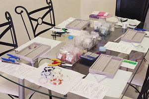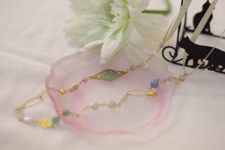 久しぶりに日本へ一時帰国しパーツや材料を購入してきました。やっぱり日本は手作り天国!NHKのお昼の街歩き番組で私が働いていた浅草橋が映ってましたね。懐かしい~。実家は関西なので、一時帰国の時は大阪と京都に買い出しに行きます。早速購入してきたパーツで春らしいロングネックレスを作りました。年中同じ服だから、アクセサリーだけでも季節感を出さなくては。天然石は流水で洗い、汚れを落とすのと同時に浄化。(水に弱い天然石は柔らかい布で拭く)ネックレスやイヤリングに使えそうな可愛いパーツたち。こういうのがマレーシアには売っていないんです。どんなアクセサリーができるか楽しみ♪