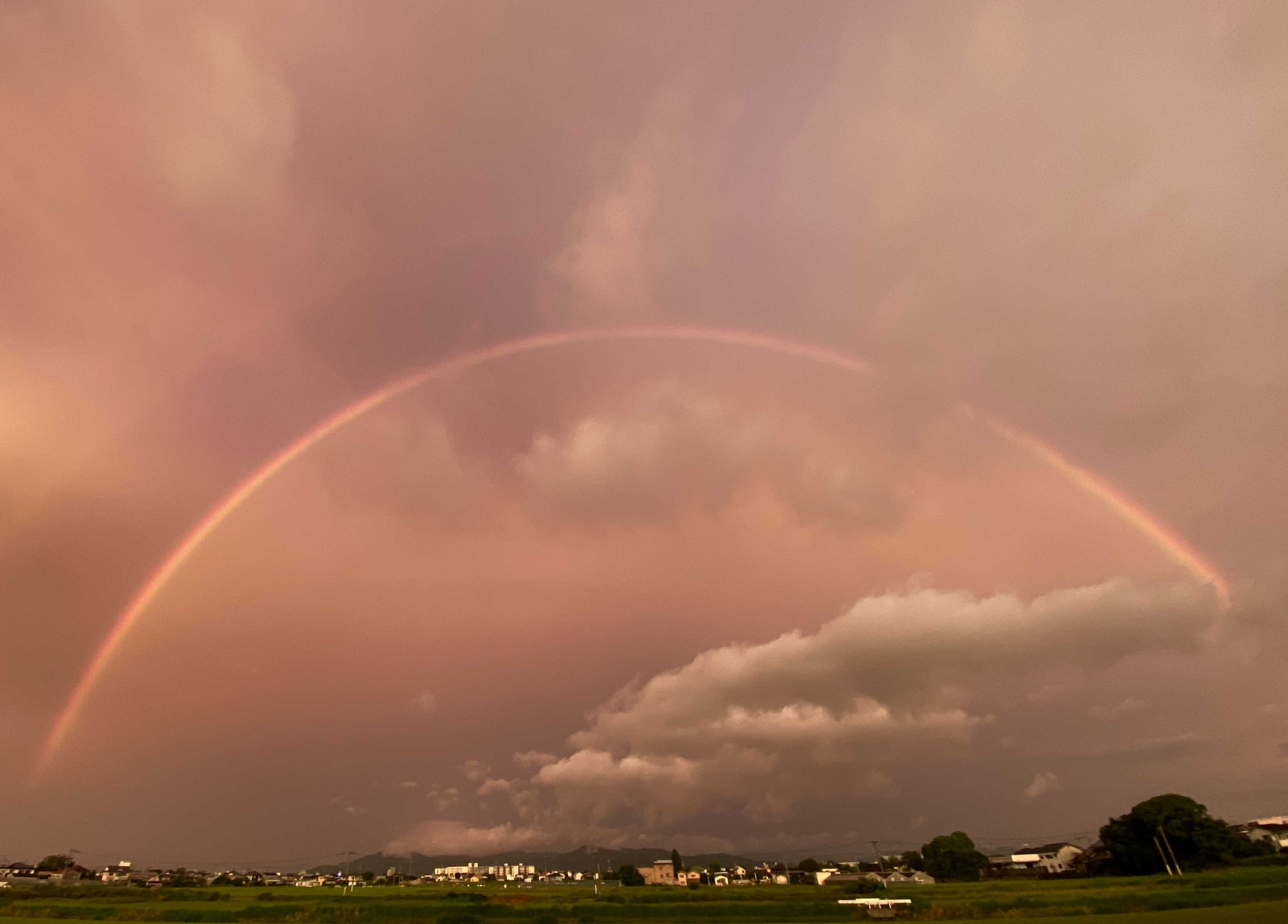 バンパーを磨いていたら、すんごい、綺麗な夕虹‼️