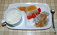 おかずは上から、豆腐に和光堂の 野菜が好きになっちゃった和風 をかけたもの。プチトマト。サトイモに前に紹介している トマトとナスとタマネギのソース をかけたもの。