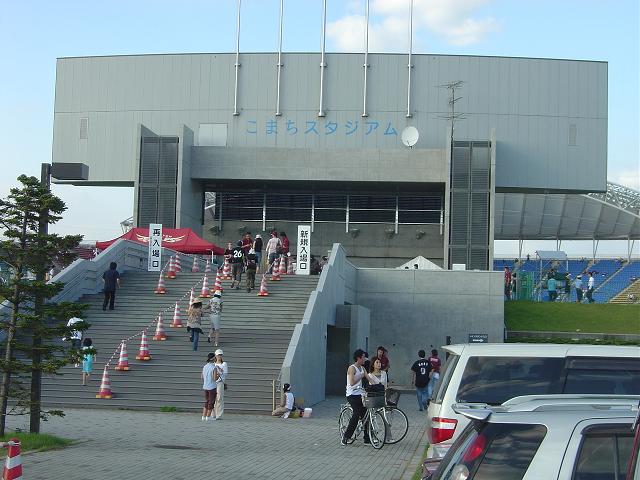 久しぶりの書き込み。8月9日の秋田での対楽天戦行ってきましたよ。2006.8.9(水) パシフィックリーグ公式戦東北楽天 対 千葉ロッテ(13回戦)秋田試合開始:18:00 試合終了:21:39 観客数:9024人ロッテ11-5楽天○勝投手 : 小林宏 13試合 8勝 4敗 ●負投手 : 松崎 9試合 0勝 8敗 良かったっすよ。球場きれいだし、場所取りとか楽勝。外野は芝生だったので、レジャーシートを敷いて。守備の時は、ゴロ寝状態。攻撃の時の応援も、人が少ないので周りに余裕があってやりやすかった。マリスタよりもお気楽に応援、観戦できた。試合も序盤に簡単に点取ったから、楽勝かと思いきや、4・5回と2点ずつ取られちゃって。ヤバイかな?って思ってたら、6回に出ましたパスクチ3ラン!!!俺の頭の上を通過!!!TVに映ってたかも。今回の秋田観戦ツアー、楽しかったっす。試合前の今江。ここで勝ちを確信した。ただ、野球観戦しか考えてなかったから、観光地とかどこにも行かなかった。せっかく行ったのにね。バカな俺。でも娘はホテル泊まるだけで喜んでたから良かったかも。秋田市って海側だったんだね。俺、ずっと内陸側だと思ってました。勉強になった。うちのマリサポ仲間、今週末のフルスタ行くんだって。誘われたけど、やめました。だって、遠いもん・・・。
