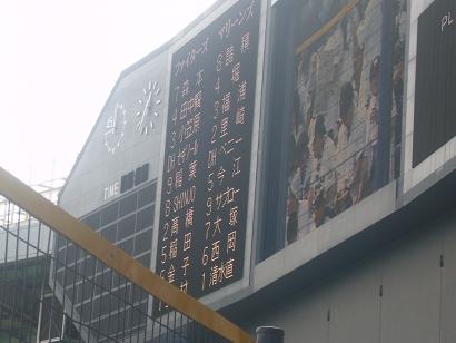 また喫煙見つかったの?謹慎中なのに?お前、ダメだね。モー引退かもね。でも、かわいそうかな。その年なら、普通に吸ってるもんね。俺だって、中学生の時には普通に吸ってたし。あっ、どーも現場監督です。昨日ビッグフラッグ登場したのに、また触れなかった。前回は、一番前に居たので、触れなかった。今回は、雨を避けて上に居たんだけど、今度は、幅が足りずに、すぐ手前で終わり。幅が足りないんじゃなくて、センター寄りに居たから俺が悪いんだけど。数少ないチャンスをモノに出来ない俺・・・。今度、いつ出るのかな?それにしても、2戦連続引き分けっすか。あの、台風の中頑張って行ったのに・・・。まあ、しょうがない・・・。あ~あ、ビッグフラッグ今度いつ出るのかな?いつ出るのかな?っと言えば、竹原いつ出すんだよ!そういえば昨日、垣内応援歌が里崎の場面で登場!いきなり、(他の方々は知っていたのかも?)援団の方が、「打て!打て!今ここで!」って言うから、思わず、えっ?っと思って隣に居た嫁見たら、嫁も、えっ?って顔しながら、チョット半笑い。垣内が居なくなったときに、応援歌は誰が引継ぐんだろうと、家族会議を開いたときに、里崎がいいじゃんと勝手に決めていたので、チョットうれしかった。だから、嫁が半笑いだったのかも。うまくハマってましたよ。これからは、どう使うんだろう?チャンステーマになるんだろうか?誰か、教えて下さい。あ~あ、ビッグフラッグ今度いつ出るのかな?っていうか、竹原いつ出すんだよ!