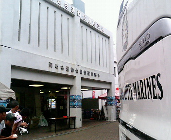 今日は、ふらりと福岡へは行けないので、ふらりと海老名運動公園野球場へ行ってまいりました。もしかしてジョニーの登板があるのでは?と思いイースタンの応援に。2006.9.9(土) イースタンリーグ湘南シーレックス 対 千葉ロッテ(14回戦)海老名試合開始:13:01 試合終了:16:11ロッテ7-5シーレックス○勝投手 : 柳田 1勝 2敗 ●負投手 : 岡本 4勝 4敗 Sセーブ : 川崎 5勝 3敗 4S ジョニー投げましたよ。7回のみだったけど。まだ、調子出てない感じでした。試合は・・・、最高でしたよ。最終回に、竹原の逆転3ラン!最終回、守備につく竹原。ホームラン打ってウキウキ?海老名球場バックスクリーンコレに乗って選手は帰りました。ジョニーを待ってたんだけど、出てこなかった。たぶん裏口から帰ったんだろう。どこが裏口だった?帰りは246が渋滞で大変だったす。