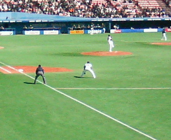 2006.8.5(土) パシフィックリーグ公式戦千葉ロッテ 対 福岡ソフトバンク(15回戦)千葉マリンスタジアム試合開始:18:15 試合終了:21:57 観客数:23636人ロッテ3-2ソフトバンク○勝投手 : 神田 19試合 1勝 0敗 ●負投手 : 篠原 38試合 0勝 1敗 点を取ってはすぐに追いつかれるだるい展開。なーんか嫌な感じ。代田に代打、橋本! 代打パスクチ!宝くじ大当たり!!!興奮してわからなかったけど、多分打球は俺の頭の上を通過したかも。テレビ映ってるかな?パスクチのサヨナラホームランが入った付近の最前列にいたので。グリーンガムのタオルを頭に巻いてるのが俺!