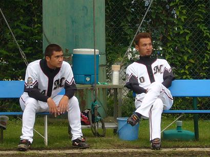2006.9.17(日) イースタンリーグ千葉ロッテ 対 インボイス(14回戦)ロッテ浦和試合開始:13:00 試合終了:16:32ロッテ4-5インボイス○勝投手 : 神田 1勝 2敗 3S ●負投手 : 東 2勝 5敗 Sセーブ : 川崎 5勝 3敗 6S 行ってきましたよ浦和へ。ゲームを勝ってマジックを2としました。もう決まっちゃうね。神田の投球を鋭くチェックするジョニーとモロさんなかなかの2ショット!ちょっと興奮してしまった。チェックされる神田。今日の勝ち投手。竹原、残念ながら1安打のみ居ないと思ったらこんなとこに!俺達のフランコ。優勝決めたら、全員1軍へ!!!昨日も負けたんだってね、1軍。今季の負け越しが決まったそうで。