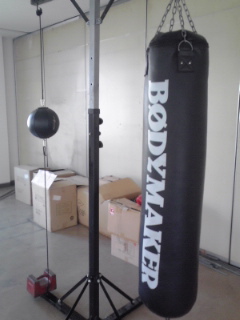 今日は仕事休み^^(単休ですが・・)まだ背中は完治してないのですがあまりにもトレーニング間隔が空きすぎてしまったので今日から軽くやって調子を上げていこうということで、老体に鞭打ってトレーニング室へ・・・そういえばサンドバックを仕入れたんですよね~^^もらい物ですが、今日初めて見たのですがなかなか良いではないですか~^^サンドバックを打つのは高校の時に空手をやっていた時以来です^^ サンドバックは後にしてまずは筋トレです^^筋トレ開始直後にチー君が来ましたよ^^久しぶりですな~。私が久しくトレーニング室へ行ってないせいですが・・・気合を入れるためショットガン(クレアチン系サプリ)を飲んで準備完了!!ゲップがまずいぞ!!(涙・・・)背中は痛いがまずはベンチプレスから<ベンチプレス>50キロ 12回70キロ 12回80キロ 12回90キロ 10回×2セット肩の稼動域が狭くなってしまったので今日はパーシャルレプスです。少しずつトレーニングを重ね稼動域を上げていかなくてはなりません。<インクラインベンチプレス>50キロ 12回60キロ 10回×3セット<スクワット>50キロ 10回×3セット背中が怖いので非常にゆっくり・・お~怖その他、腕関係を徹底的に追い込み一旦終了。ココでショットガンとペアで使用しているシンセサイズを飲んで休憩・・やはり背中が張ってないと寂しく思いラットプルダウンを極々軽い重量で非常にゆっくりやって何とか利かすことが出来たような・・・その後、有酸素運動としてサンドバックを休み休み打ってました^^結構汗だくになります^^トレーニング後半から下痢に悩まされ、トレーニング中にトイレに駆け込むこと3回ほど・・・ん~~~??水が悪かったのか?サプリメントが悪かったのか?体調が悪かったのか?家に帰ってからは今のところ大丈夫ですが・・・
