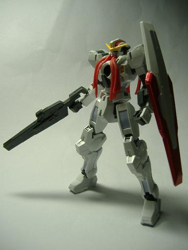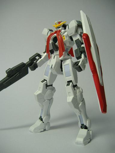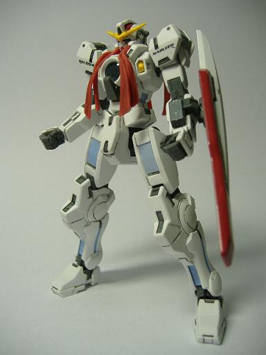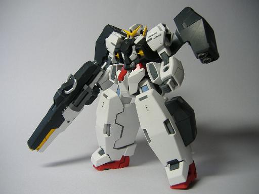 はい。ということでヴァーチェ完成したのでいくつか画像をUPします。こんな感じです。基本的に部分塗装のみで仕上げましたが結構良い感じですよね。私としてはフル塗装する方が苦手なんで、ぶっちゃけこっちの方が綺麗かもwちなみにデカールは左肩にのみヴァーチェの型番と名前だけ貼りました。ホントはもっといろいろ貼ってみようかとも思ったんですが、下手に貼りまくるよりこれくらいの方がシンプルで良いような気がしたのでこれだけにしました。けしてデカールをケチったとかじゃないですよw後ろから見たところ。相変わらずブースター部分は金色で塗装。さらに今回は仕上げのトップコートを場所によって使い分けてみました。頭部と胴体部分は半光沢、キャノンの砲身とバズーカの内部は光沢、それ以外をつや消しで仕上げています。とまあ、こんなところですかね。時間はかかったけど、なかなか良い出来になって良かったですw近いうちにサイトの方にレビューページを作りますので、よかったらそっちの方も身てやって下さい。 ブログランキングに登録しています。よろしければ支援クリックをよろしくお願いしますρ(・ω・`)