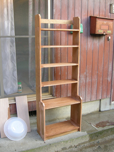 はい。というわけで約2週間ぶりですが、やっと本棚の表面処理が終わりました。こんな感じ。……といってもよくわからないですよね。まあ、"表面処理"なんて仰々しく言っても、結局は表面がつるつるっぽくなるまで磨くってくらいなんで、見た目的にそんなに変化はありません。強いて言うならパテを盛っている部分の処理が大変でしたかね。というかこの2週間ほとんどそこばっか磨いてて、最終的にある程度妥協しつつ今日に至る。まあ、実際触ってみると結構な変化がわかります。自分でやってみようと思う人は視覚より触覚で感じてみてください。ちなみに、表面処理は紙やすりの#120→#240で処理しています。枚数は、#120が8枚、#240が2枚です。#120は途中ちょいちょい買い足しました。木工パテはプラモのパテとはかなり勝手が違うので慣れるまで苦戦しましたね。てか、付属のハケがかなり出来が悪い。あれなら指で埋め込んだほうがよかったかも。とまあ、表面処理についてはこんな感じ。とりあえずこれで明日からニス塗りに入れます。昨日雨降らなかったら今日するつもりだったんだけどね。まあ、また来週更新しますので。はい。 http://blog.with2.net/link.php?313409 (人気ブログランキング) http://collection.blogmura.com/plamodel/ (にほんブログ村) ブログランキングに参加しています。よろしければ支援クリックをお願いしますρ(・ω・`)ポチット