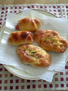 昨日から鼻水とくしゃみ、咳が...。日中は機嫌もいいし、まだ病院に行くほどでもなさそう...。Haruはしょっちゅう風邪をひいちゃう...。病院に行くにしても今日みたいな天気だと余計に風邪がひどくなっちゃいそうだから、とりあえずは家で様子見。今は気持ち良さそうに寝てます。基本的に風邪ひいて鼻詰まってても、食欲あって寝れてるから元気!!よく寝ててちょっとヒマだったから、突然“焼きたてのパンが食べたいな~”って思い作ってみました。☆ウインナーロール&ベーコンロール☆焼きたてはそこそこおいしかった...かな。なんせ適当に作ってるから見た目もイマイチ...。でも一人作って食べて満足。そんなことより、Haruの風邪がひどくなりませんように!!