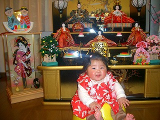 今年は人形買った時にもらった羽織着ての写真だけど、来年とかは一緒に着物着て写真撮りたいな