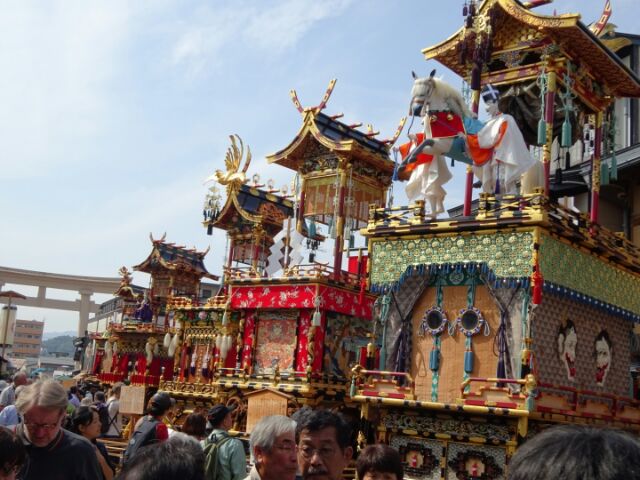 本日は、10月9・10日に行われた櫻山八幡宮の例大祭、秋の高山祭の写真をアップします(^^)日本三大美祭として名高いこちらのお祭り。。。豪華絢爛な山車が曳き揃えられ、見応え十分です!日程の都合で、9日の宵宮のみの滞在でしたが、日が暮れて提灯を付けて曳きまわされる宵山も満喫ができました(*^_^*)「静」の祭りと言われているように、殆どの時間、参道に曳き揃えられた状態で、動いている屋台を見るのは時間が限られていますが、その分、じっくりと細部まで見ることが出来ます☆見事な彫刻、豪華な装飾品を間近で見れますよ!!宵山では、約100個の提灯に灯が入り、幻想的な曳行が行われます!参道を出発し、国分寺通りに曳き揃えられて休憩し、曳き別れの唄、【高い山】を歌いながら各屋台蔵へと戻っていきます。来年は9日(日)・10日(月・祝)っちゅう日程やけん、是非行かれてみてはいかがでしょうか??櫻山八幡宮 例大祭~秋の高山祭~