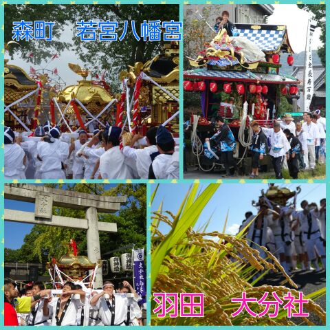 大分市内の秋祭り最盛期!!この日は、森町・森・横尾の三地区の祭りである若宮八幡宮、川床の熊野神社、牧の御霊社、そして、二年に一度の御神幸が行われた羽田の大分社の秋祭りが行われました!!若宮八幡宮は森町でお囃子のお手伝い!今年も賑やかなお祭りでした(^^)途中、ちょろっと抜けて、川床の熊野神社と牧の御霊社へ御挨拶に伺い、午後からは羽田の大分社に合流して、こちらでも笛のお手伝い(*^_^*)森町も羽田も1~2時間遅れでの御着きっちゅうことで、とにかく盛り上がりました(^O^)写真は改めてアップします(*^^)v各地区のお祭り関係者の皆さん、大変お疲れ様でした(^O^)