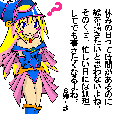 最近BMGの絵ばかり描いてるばらすぃーです。今日もまたBMGを描いてきました。。。あっ、S嬢とは俺の他のお絵かき板のHNです。某お絵かき板にこの絵を投稿したところ、俺の疑問にこう答えてくれました。「それは現実逃くぁwせdrftgyふじこlp」まさにその通りです