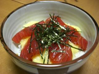 毎日夕食の献立を考えるのが悩みの種仕事帰りにバスを待つ間に買い物をしていますが乗り遅れると大変次のバスまで30分待たなければなりません。献立を考えながらゆっくりと買い物をしている余裕など全然ありません。なので、朝の出勤途中のバスの中で献立を考えておきます。今朝も「今夜のおかずは何にしようかな」と考えながら窓の外を眺めていたら松屋の新メニュー『やまかけ漬け鮪丼』の旗がなびいているのが目に入りましたこれだ~~~というわけで今夜のばんごはんはやまかけ漬け鮪丼お刺身をみりんと醤油に15分漬け込んで、とろろと一緒にのせただけ・・・あっという間に出来上がり