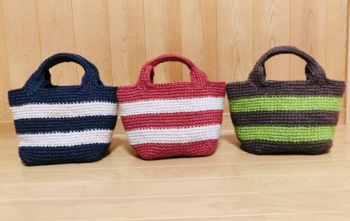 今日も寒いですね~晩ご飯は煮込み料理やシチューが続きます。毎日ストーブの上ではお鍋がグツグツ・・・お鍋のおもりをしながら編み物してます。さて今年初の作品は・・・四角底の麻ひもボーダーバッグです。青×白赤×白そして長の字展で好評だった茶×黄緑の組み合わせ3月のゆるり展まで2カ月を切りました。頑張ってどんどん作っていきます!新色も登場しますのでお楽しみに・・・