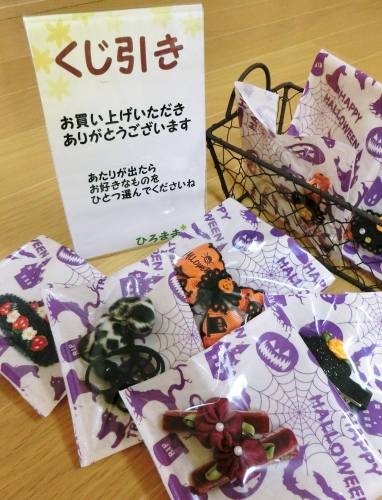 今日はハロウィンなのでちょっとしたサービスを考えてみました。お買い上げして頂いた方のためにくじ引きを用意。大当たりが出たら~こちらの麻ひもミニバッグを進呈します。昨夜寝る前に急に思いついて作ったハロウィンペンダント。今日は身につけて行きます。二日間お天気も良さそうですぜひお出かけくださいね!