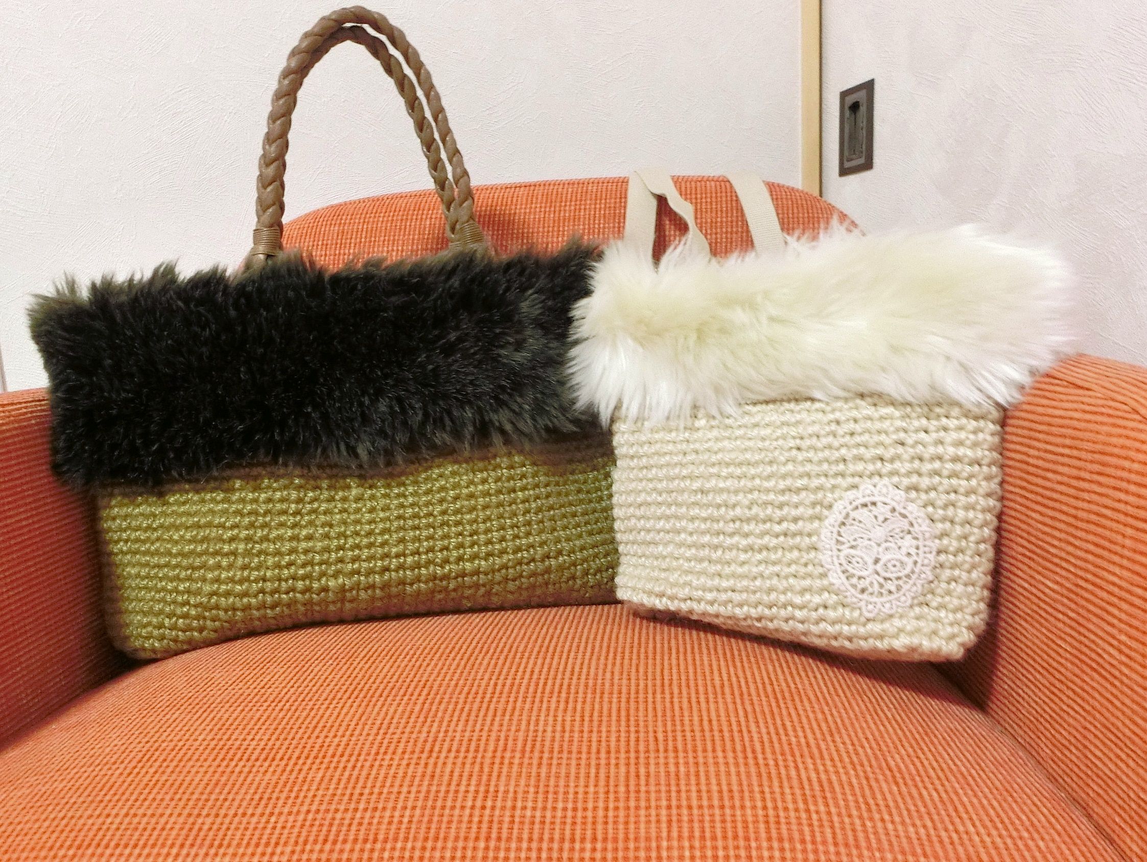 ファー付き麻ひもバッグの紹介です。