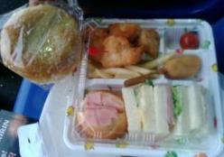 アリスのクイーン・オブ・ハートのバンケットホールにある【アンバースデーケーキ】お誕生日じゃない人のケーキをご存知ですか?ケーキに”HAPPY UNBIRTHDAY”って書いてあるんですよ。『なんでもない日おめでとう~』って意味らしいですね。で。お誕生日のわたくしとしては、やっぱり”HAPPY BIRTHDAY”ケーキが良いじゃないですかそんなわけでやってもらいました。(あ、頼めば誰でもやってくれます) お昼ごはん↑がちょっと遅めでしっかり食べたので、夕ご飯は、こちら。忘れちゃいけないグッドタイムカフェのエビカツサンドそして、嬉しい出会いがありました。じゃじゃ~ん。このポーチ厄年だった去年、ぎっくり腰と、このポーチを無くしたのでありました(爆)その中にはピアスも入っておりました・・・。その後、このポーチもどこにも見つからず、ピアスももう売ってなかった。。似たようなピアスは発見して買ったけど。それが!!!850円が500円に値下げして売られている・・。なんということ!!!!!買い占めようかと思っちゃいましたよ(* ̄m ̄)もっと前から出しておいてくれれば、私定価でも2つ買ったよ?(爆)得しちゃいました今回、あまりピンとくるお土産がなかったんですよねぇ。まあ、いろいろ買ってもらいましたけどm(_"_)mのり・オカカふりかけ・のり茶漬け の3点セット。・・・あけてみりゃ、ほぼ缶代ですな(爆)のりを乗せて、ふりかけかけてみました。そんな素敵なお誕生日。やっくんありがと